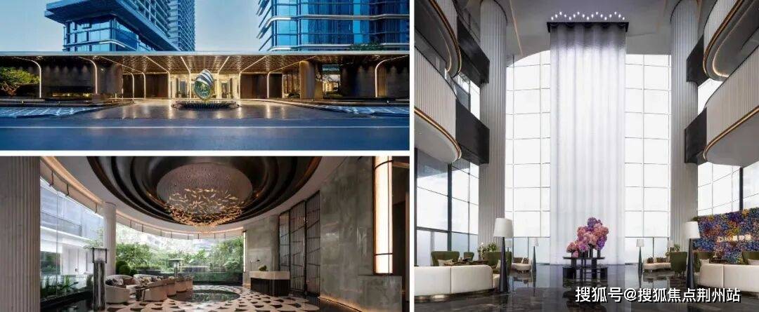 以百米范思哲黑奢石门廊+约28米的“华中第一高”飞瀑大堂+约210米长的恒温风雨连廊,建立出感和舒享感拉满的归家仪制;